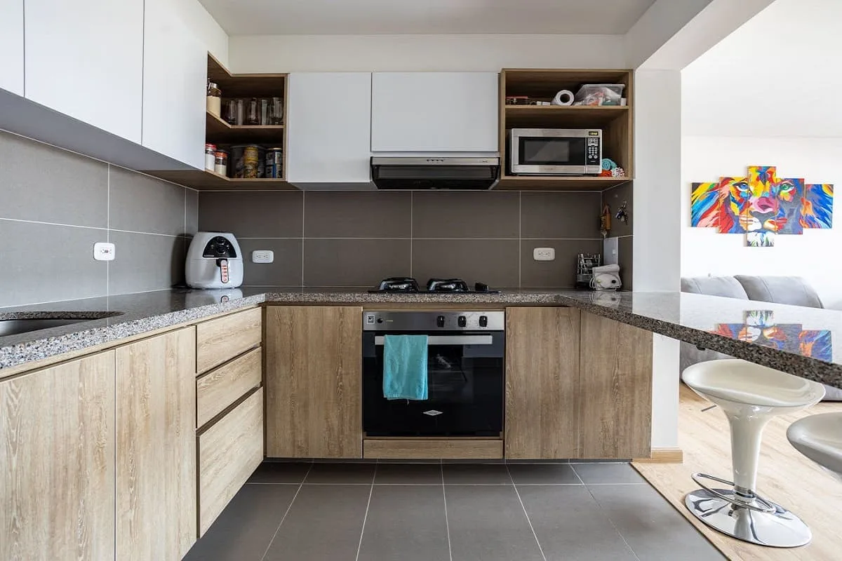 Nuestro equipo especializado en diseño te ayuda a proyectar tu cocina de melamina y madera a tu gusto, logrando un diseño funcional.