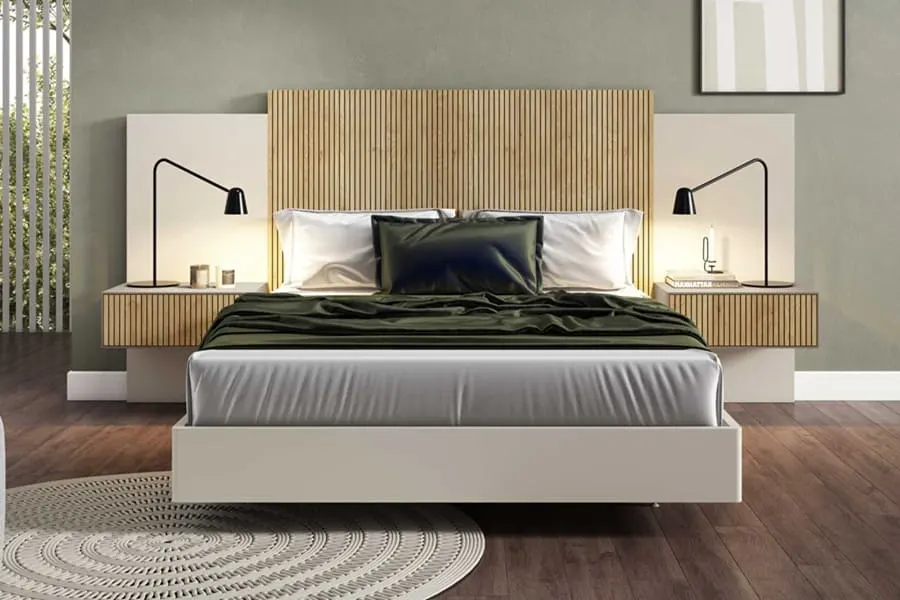Las camas lineales le dan un toque de elegancia moderna a tu dormitorio. Fabricadas en tablero de melamina con una combinación de madera de alta calidad, estas camas ofrecen una base sólida y duradera.